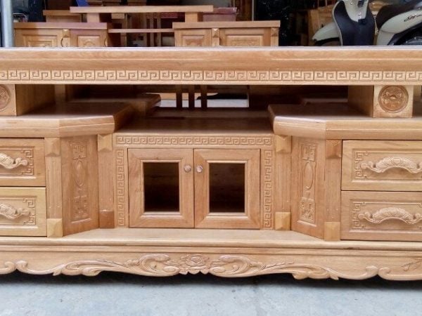 Có thể thấy gỗ sồi được sử dụng để làm đồ nội thất khá nhiều. Một trong những vật dụng mà bạn có thể dễ dàng bắt gặp ở bất cứ gia đình nào đó chính là kệ gỗ tivi. Đây cũng là một trong những mẫu kệ được nhiều người lựa chọn.